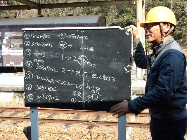 …黒板に書いてあるのは作業ダイヤのようなモノなんですかね?