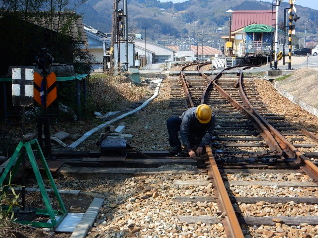 黄福柵原駅の手前には、引込線に入る分岐器があります。基本的