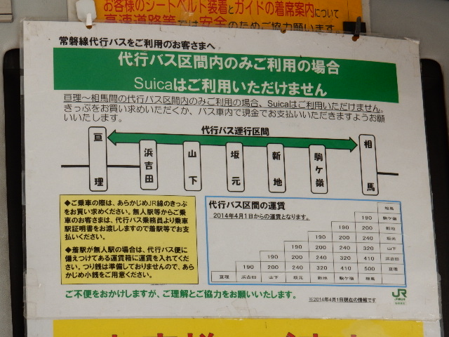 ココからまた代行バスです。接続時間がギリギリなので、すぐ乗り換え。