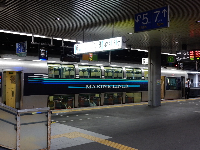隣はマリンライナーの指定席車両ですね。ホームの幅が広すぎて両方