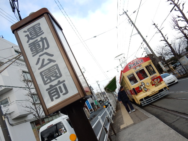 さて「おでんしゃ」ですが、 折り返し地点運動公園前に到着です。