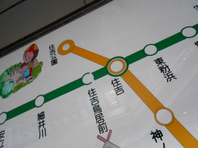 入る直前に、住吉の電停があります。