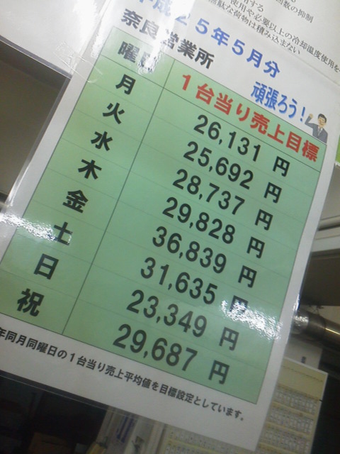 画像は、営業所に貼ってあった売上目標ですが