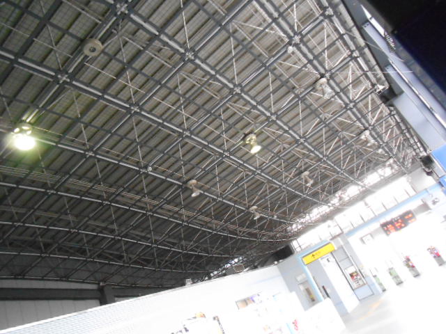 屋根が絶妙な曲線を醸している、終点のウッディタウン中央駅。