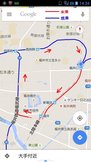 右の画像は、乗ってきた電車が