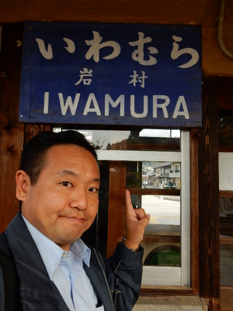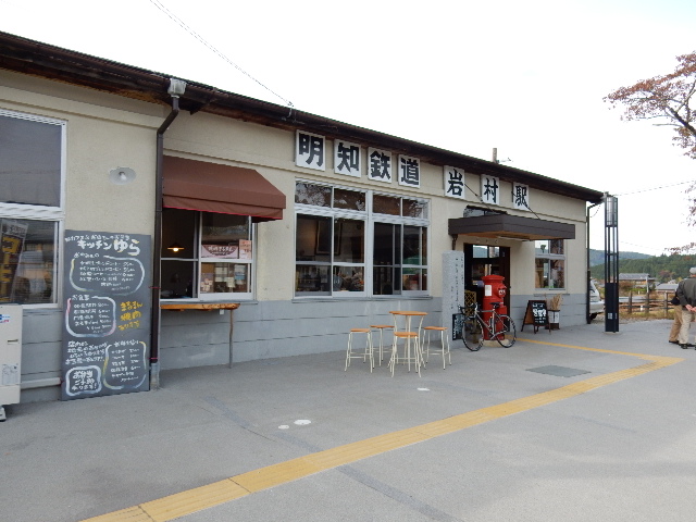 路線の中ほどにあり、交換設備を有する岩村駅です。