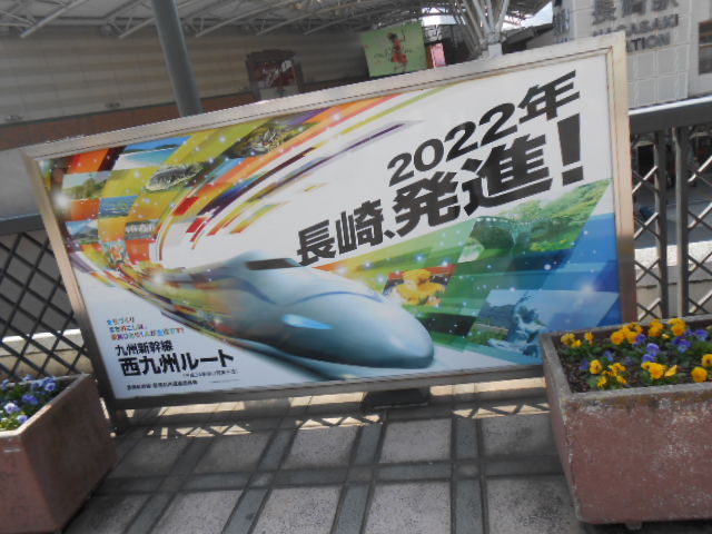 駅前の看板を2題。…いよいよ長崎にも新幹線が来るってか?