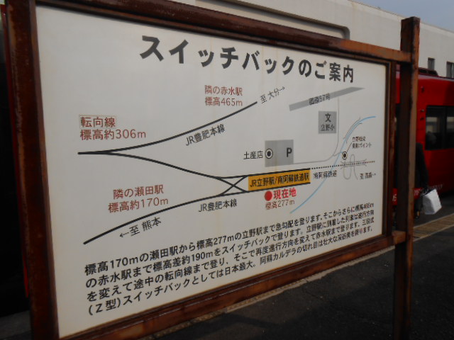 スイッチバックのある立野駅ですね。大分側から来ると、駅は