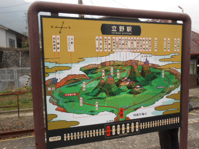 ホームには、スイッチバックの丁寧な図解説明と、阿蘇周辺を
