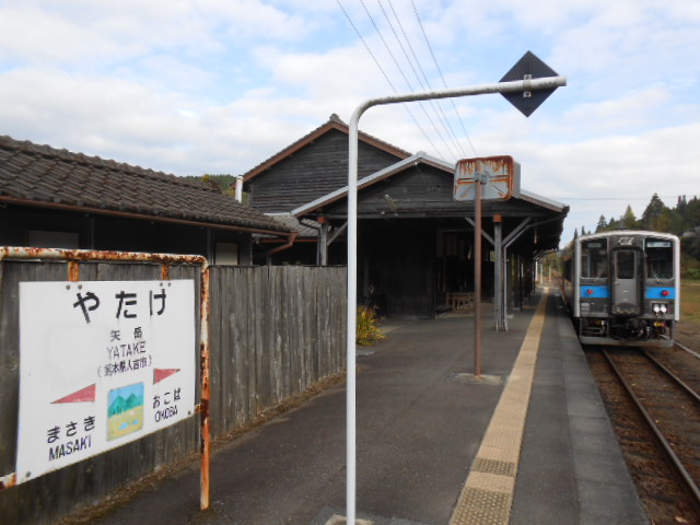 そんな感じでやっと発車。2本並んだ出発信号機に「肥」とか「久」とか