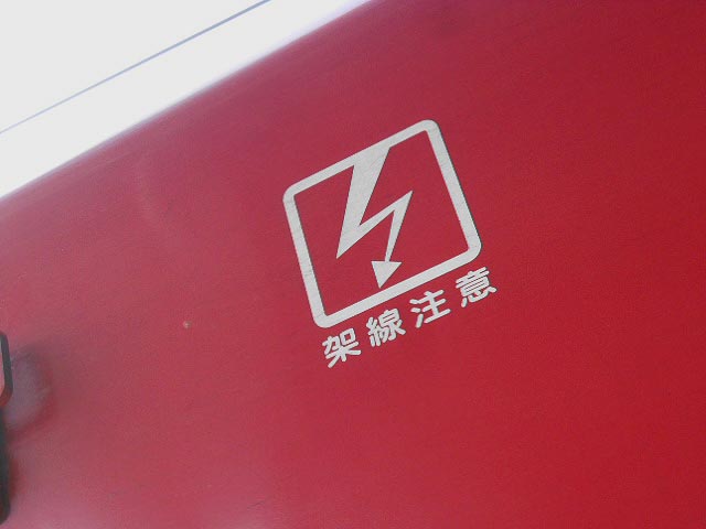 「架線注意」。コレも例の「水戸岡デザイン」ですか?
