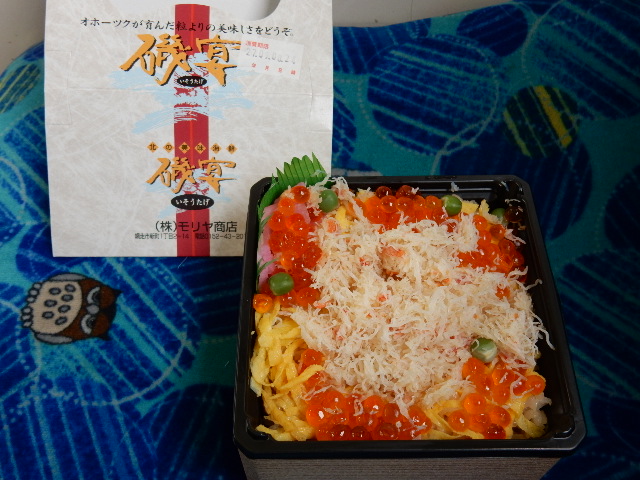 まずは網走駅で買ってきた 「磯の宴」。カニとイクラのちらし寿司です。