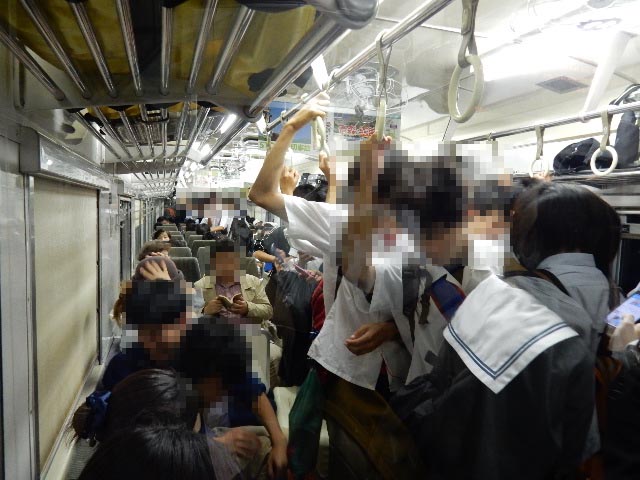 4両編成の列車は一気にガラ空きになりました。