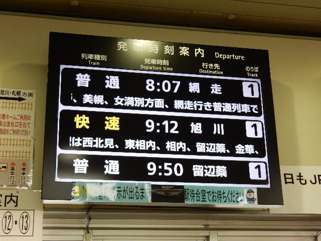 さて北海道です。3日目の朝を迎え、北見から石北本線を更に東へ
