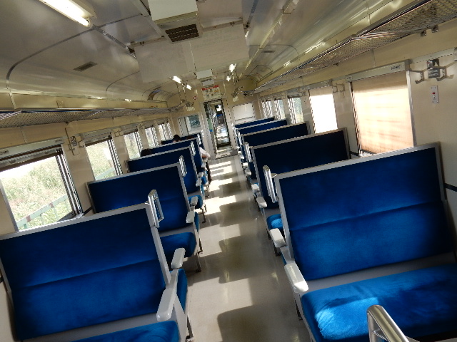 ガラ空きの青いクロスシートの車内と