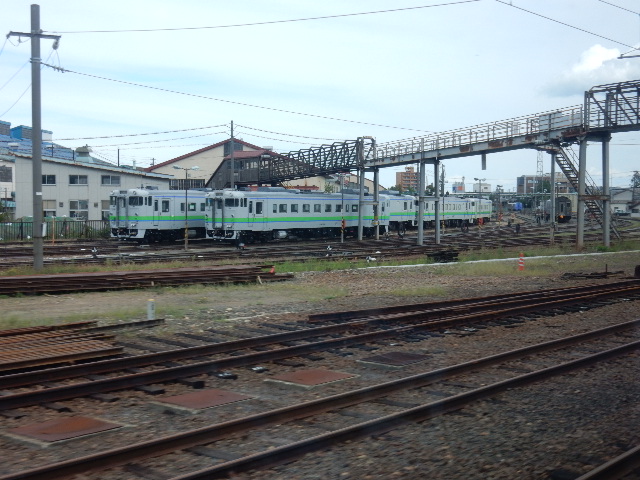 発車してすぐ見えるのが、苗穂の車両基地ですね。