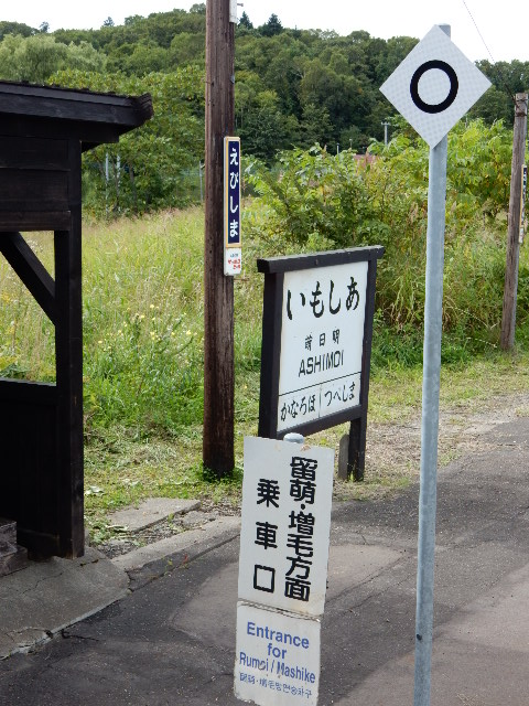 劇中の設定だった「あしもい(明日萌)」という駅名標が残されています。