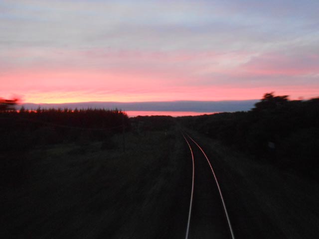 車両後部から見た根釧原野の夕暮れ。風景的に、本州ではナカナカ