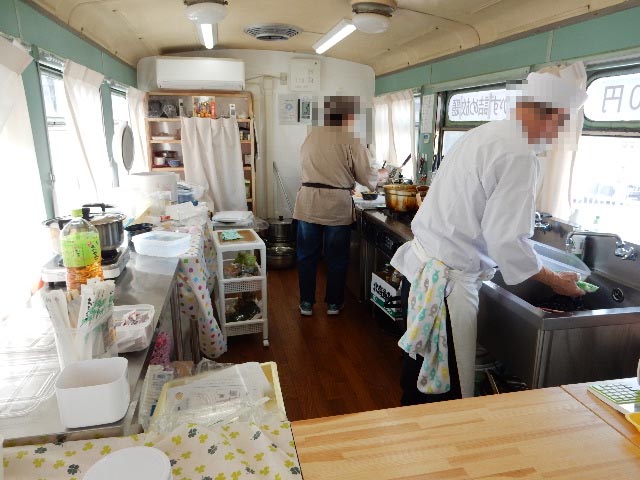 鉄道車両の中という、限られたスペースに飲食店用の器材をハメ込んで