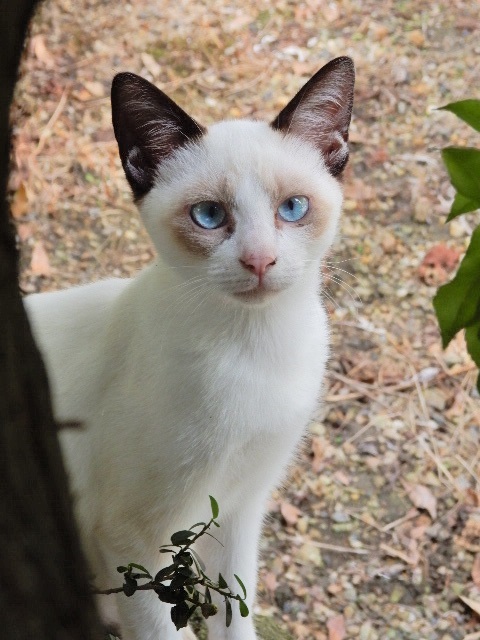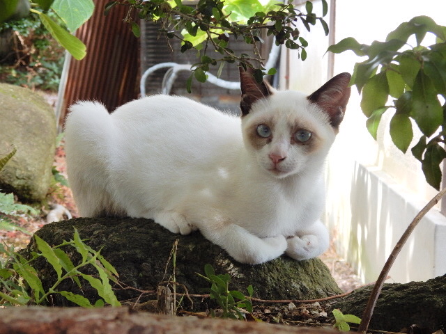 …そして第2猫。カナリ丸顔の白茶さんが畑でお昼寝中でした。