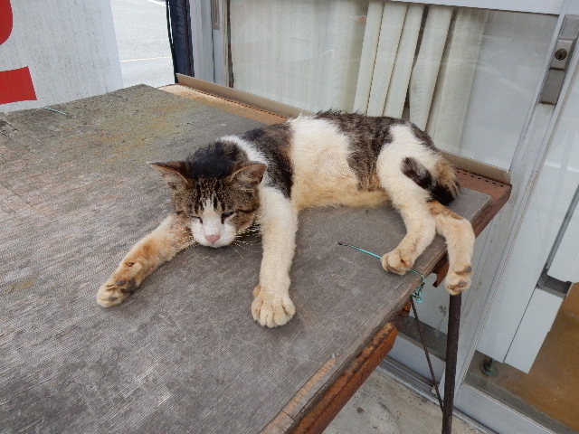 島民らしきオバサンが通りましたが、慣れてる光景なのか猫には無関心。