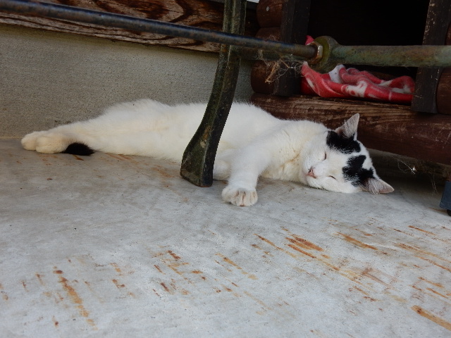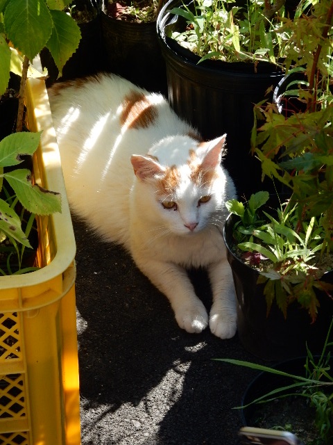 日陰になるので、目ざとく猫が