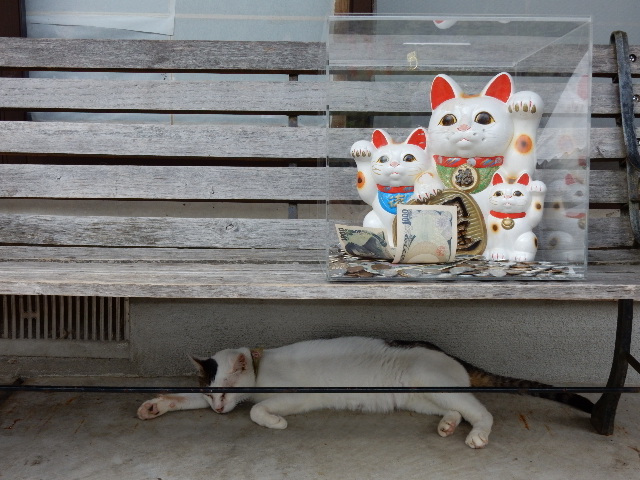 境内には所々に「猫小屋」があって、ソコで昼寝してる子も居ました。