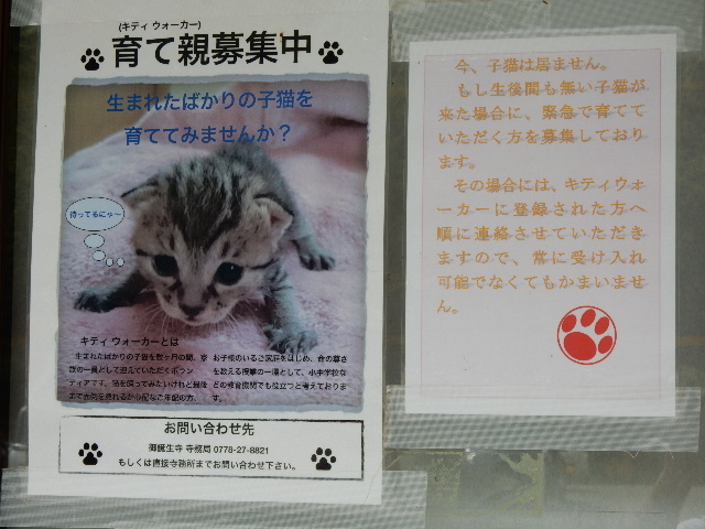 そんな猫が居たり、子猫が産まれた場合などには、お寺で里親を募集