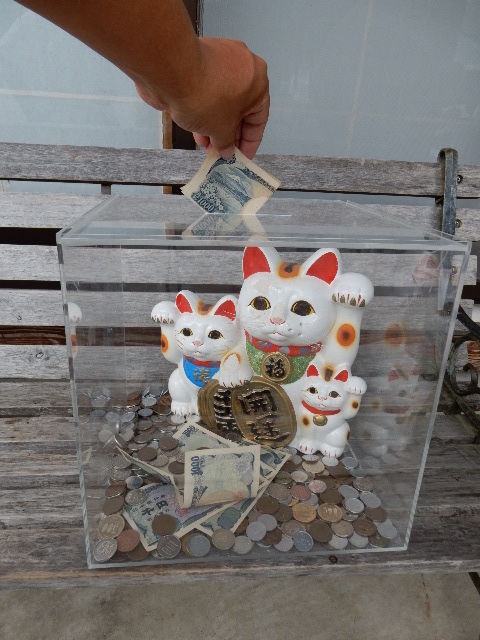 ので、ベンチの上に募金箱が置いて