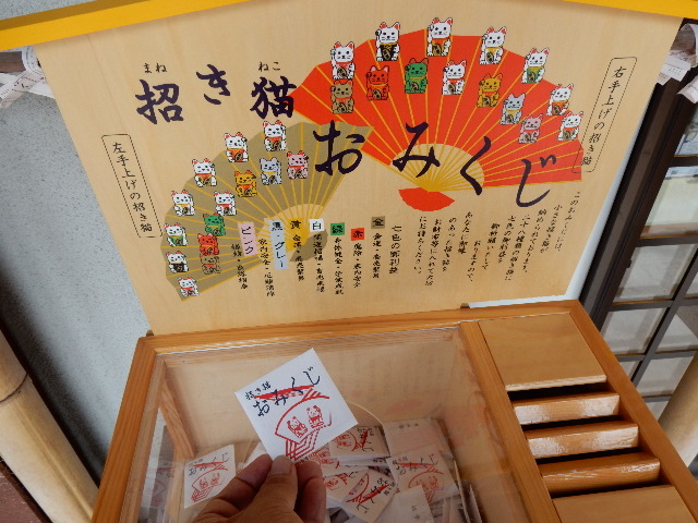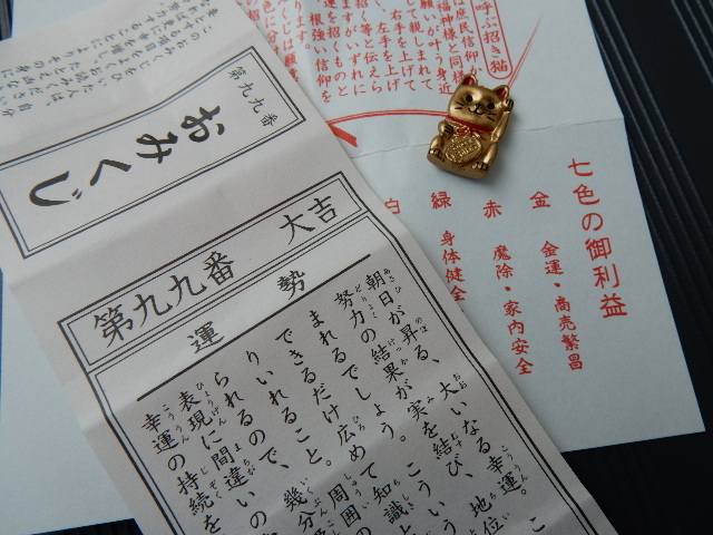 折角だから、おみくじも引いておきました。色違いの小さな招き猫