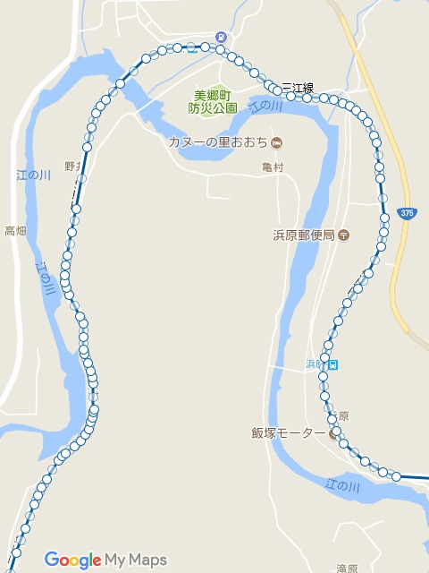 以上ある上に、江の川に沿って矢鱈と曲がりくねってるでしょ。