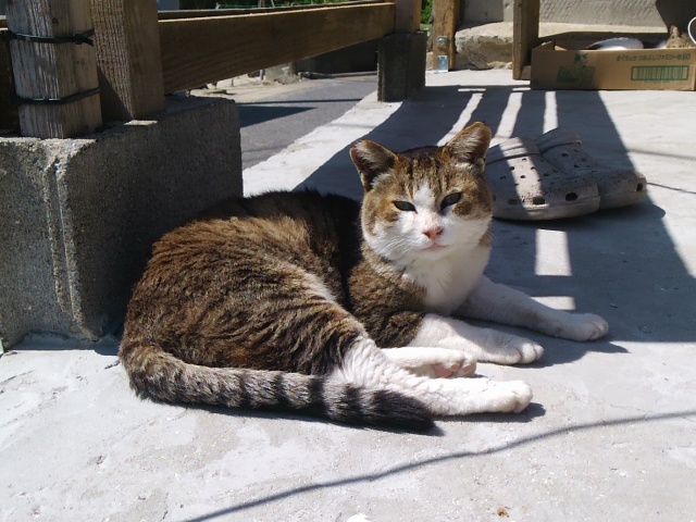 さて馬島です。引き続いて集落の入口にあるお家の前で猫を観察して