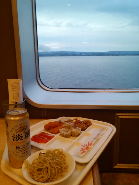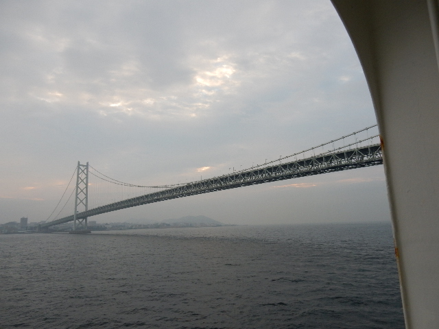 朝食を取る頃に明石海峡大橋を通過。関西に戻ってきたと実感します。