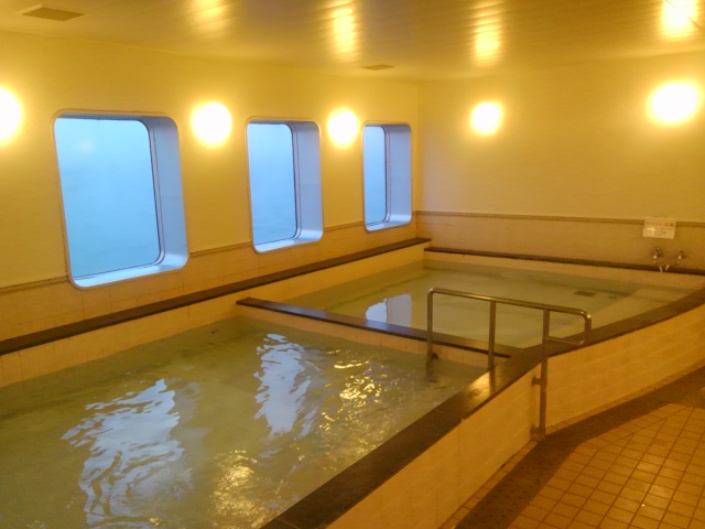 というイメージではナイものの、流れ行く島影を見ながらの風呂って