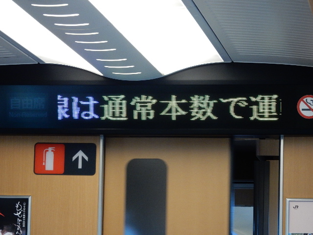 通常ダイヤに戻ったようで、車内の電光掲示板ではソノ告知が繰り返し