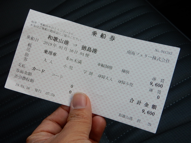 というランクになり、徳島まで私1名を含む航送運賃は9,600円。