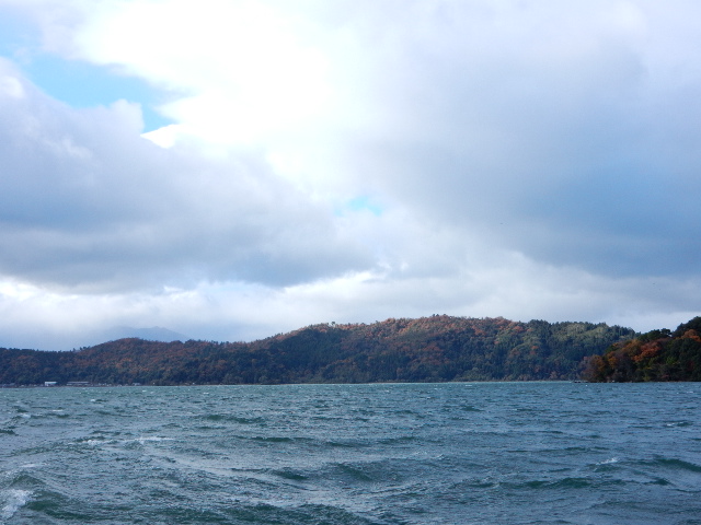 お天気はイイものの、風が強くて琵琶湖だというのに波が高く、船は