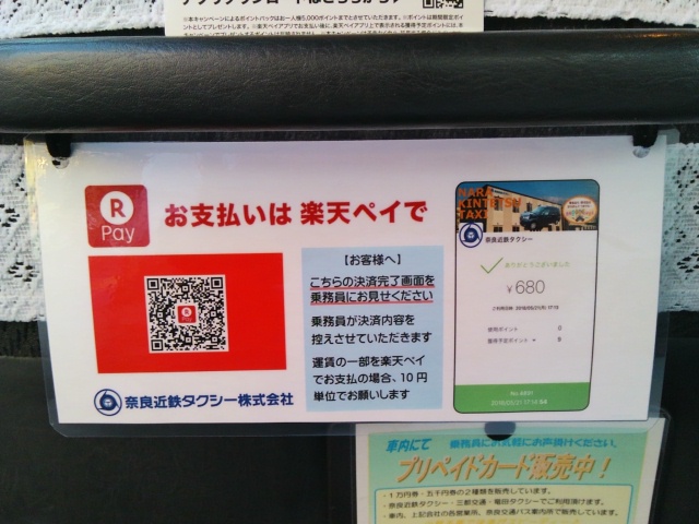 6月1日からウチのタクシーでも「楽天pay」が導入され、モバイル決済が