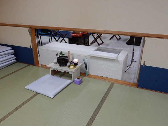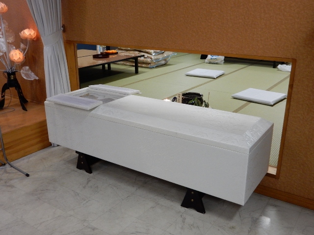 係の人が棺桶を移動してくれるので、控室側からも対面が出来ると言うか