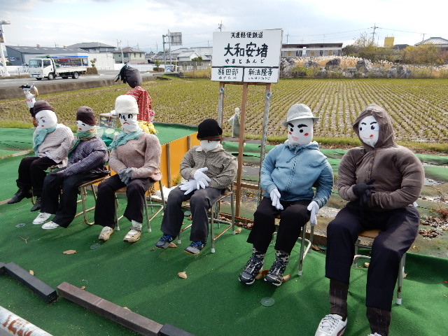 の集団の背後に「大和安堵」という駅名票のようなモノがありました。
