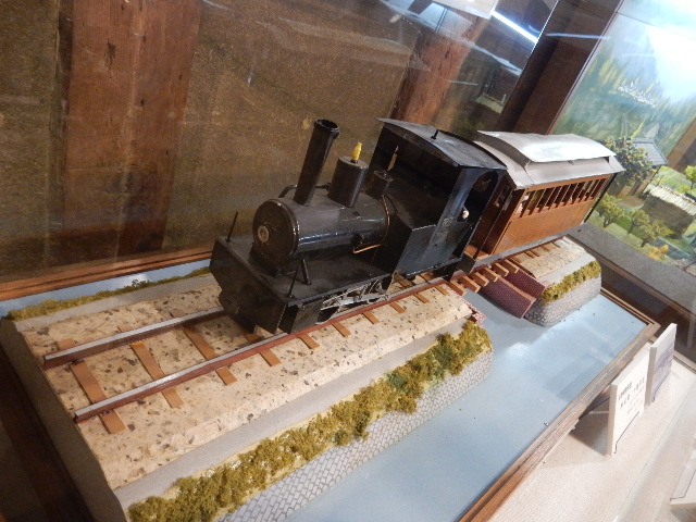 と、先程見て来た木戸池の築堤を走る機関車列車の模型もあります。