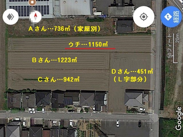 見せられた住宅地図と、Googleの航空写真を比べるに、やはり形が結構