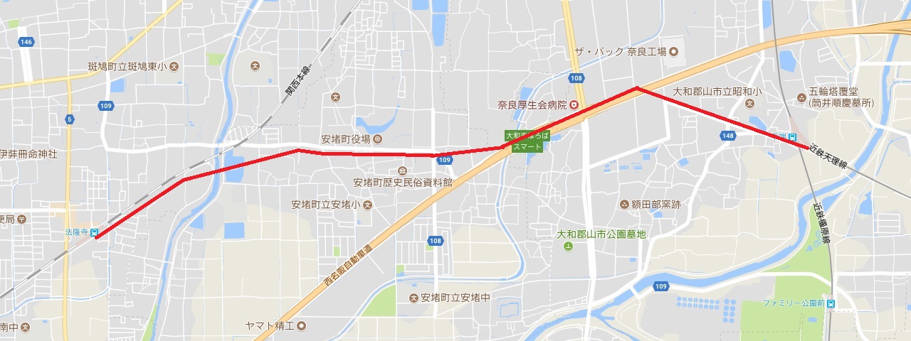 )までの短絡を目的に、新法隆寺~天理で建設されました。