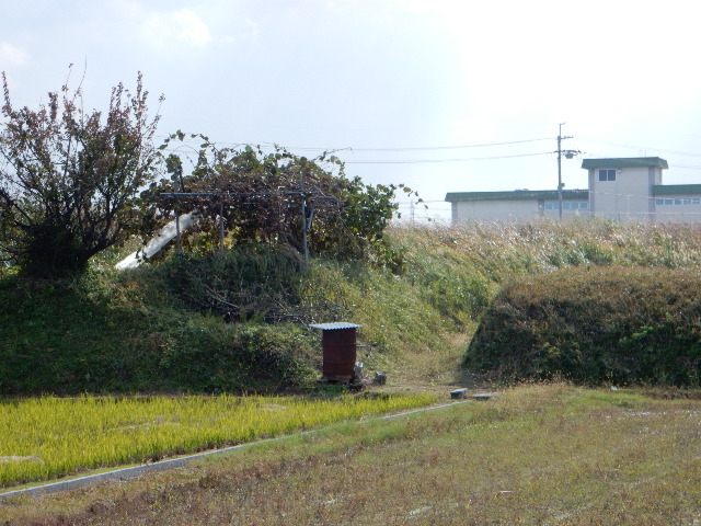 築堤切れ目があるのは、下を通ってた畦道高架橋で越えてた名残り