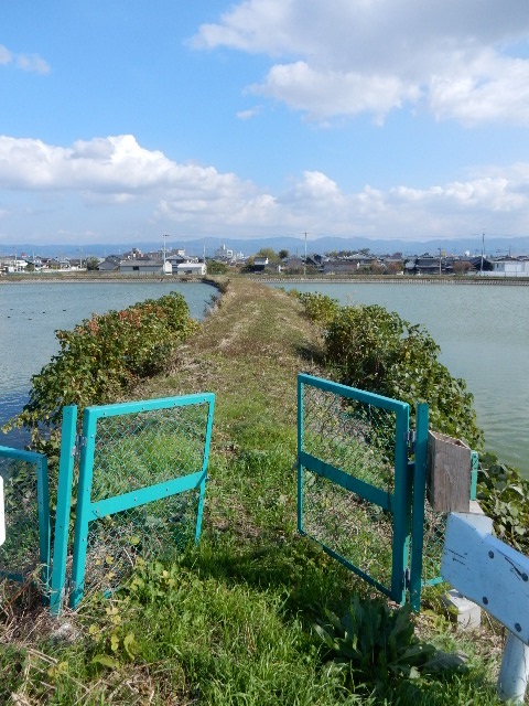 元来た道を戻り、池の南側を迂回します。…天理軽便鉄道コノ築堤
