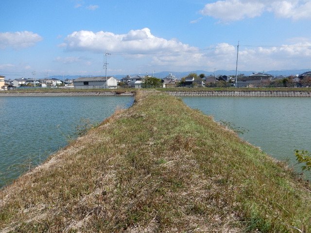 先程の築堤を見つつ池を迂回すると、西安堵という集落に当たります