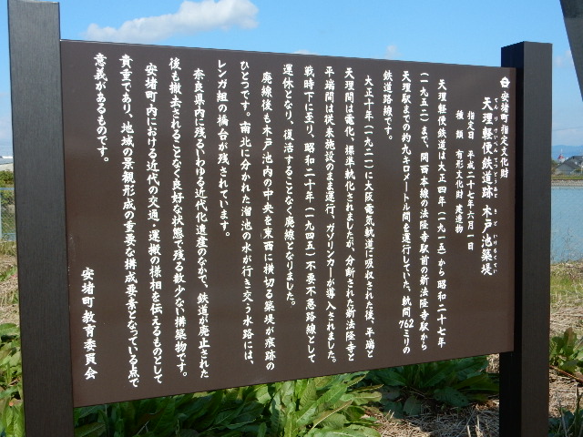 行われたであろう新しい堤防なので、天理軽便鉄道の方は痕跡が