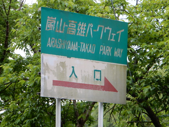 この先からへ曲がると、嵐山高雄パークウェイという観光有料道路