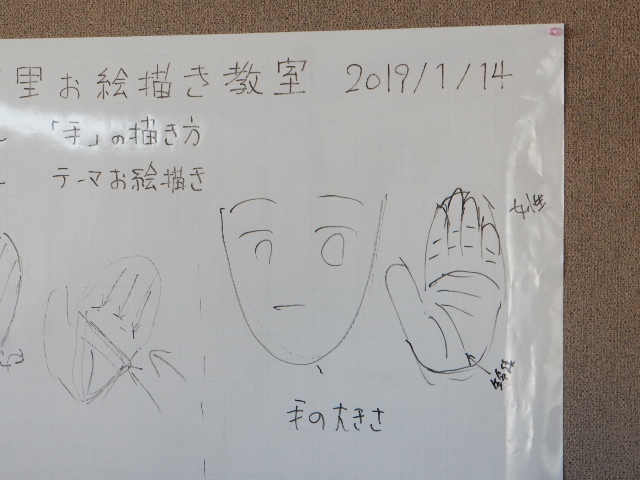 さて播磨下里お絵描き会教室ですが、駅長代理F17さんによる「手の