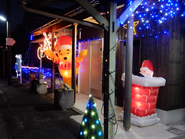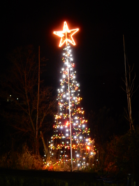 クリスマスツリーのイルミネーションがあり